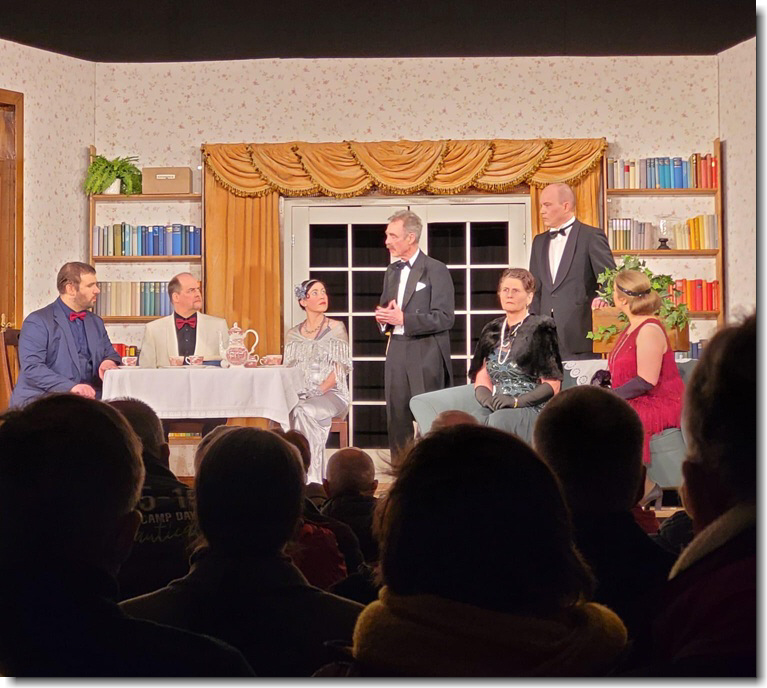 Es begann alles so harmlos. Nettes und auch weniger nettes Geplauder ein wenig mit dem üblichen Familientratsch. Alles ganz harmlos. Als es gerade spannend zu werden schien, weil das Familienoberhaupt etwas verkündigen will, stirbt dieser zuckend auf der Bühne. Und schon ist es mit harmlos vorbei. Nun kommen die Geschichten der einzelnen Personen zum Vorschein und dafür sorgt mit seinem besonderen Befragungsstil ein Detektiv mit seinem köstlichen Assistenten. Erst einmal ist es offen, ob es Mord ist. Und bis zum Schluss bleibt es dann offen, wer es war. Dabei haben alle Besucher und Besucherinnen des Theaterstücks doch dabei gesessen…