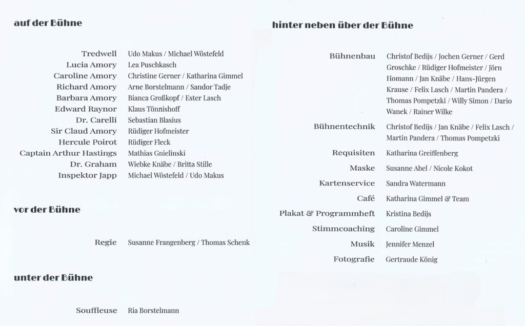 Der Spielkreis Theater freut sich, Ihnen im Februar an zwölf Aufführungsterminen das spannende Kriminalstück „Monsieur Poirot und der schwarze Kaffee“ von Agatha Christie zu präsentieren!